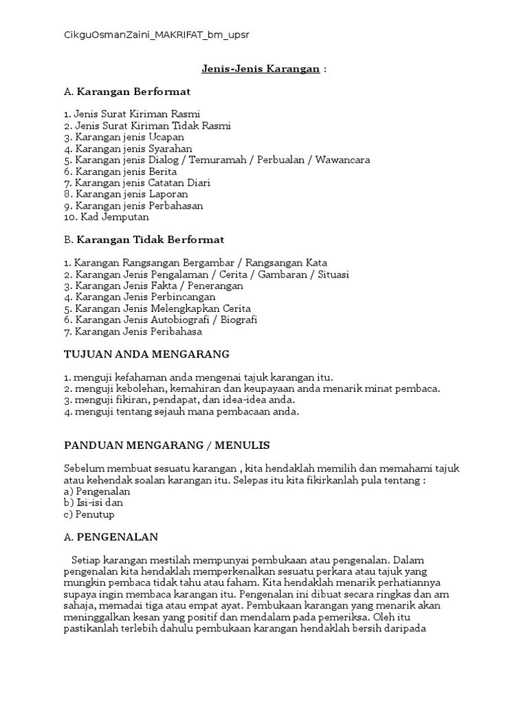 Contoh Karangan Upsr Bahasa Melayu Senarai Tahun 6